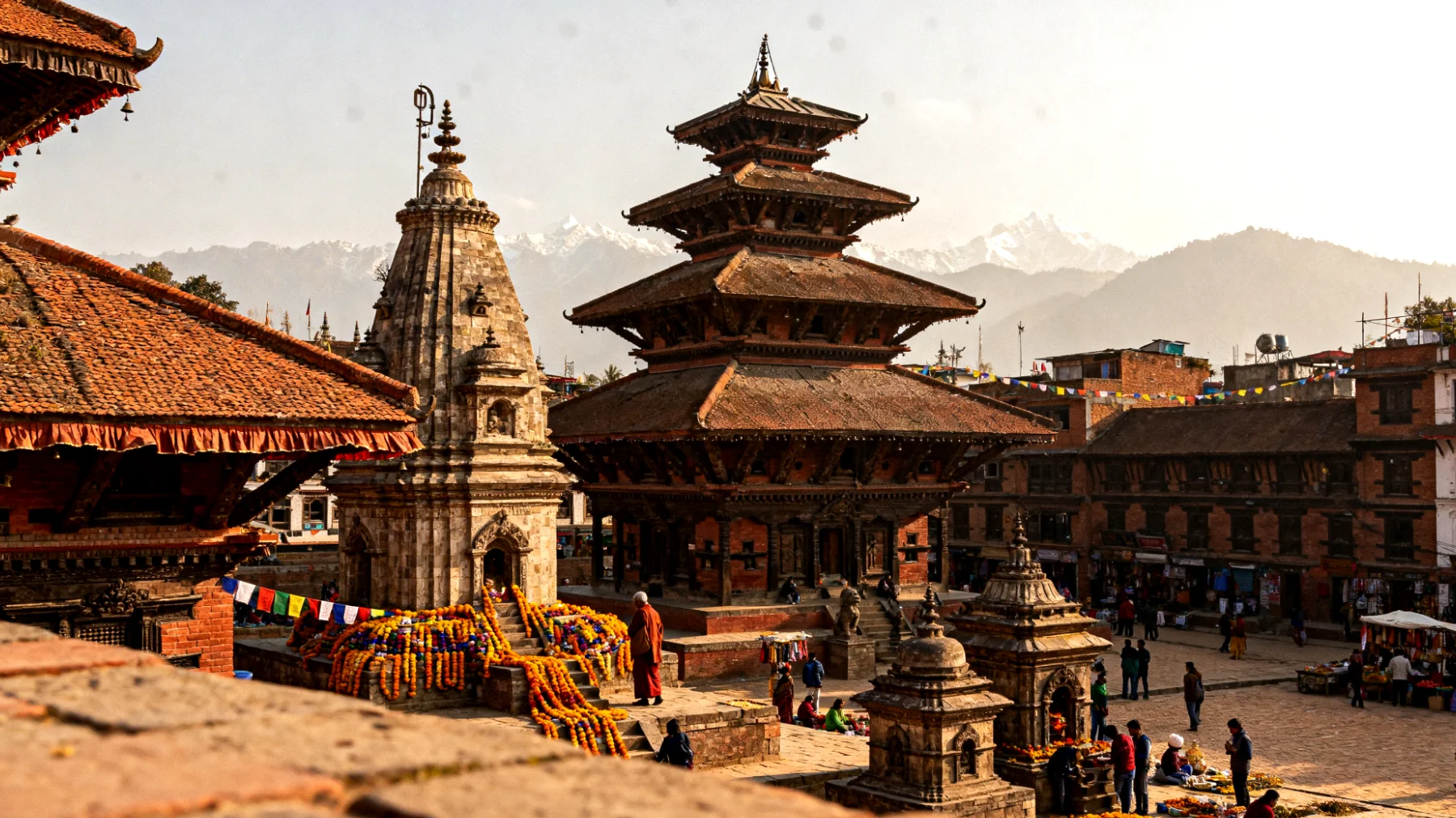 Un’esperienza da non perdere è assistere al tramonto dalla sommità del tempio Nyatapola, quando la luce radente accende di oro i mattoni rossi e le montagne in lontananza si tingono di rosa. In questi momenti, viaggiare da soli diventa un privilegio che permette di assaporare pienamente la magia del luogo.